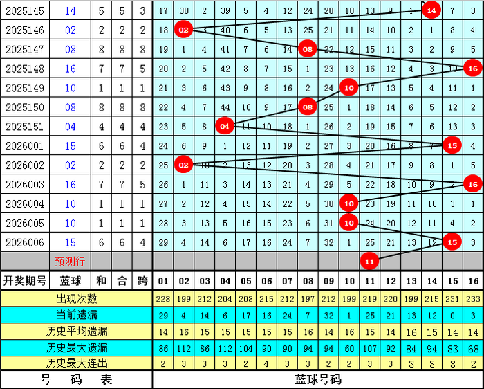 蓝球分析:上期蓝球开出号码15,飞腾5个点位,最近10期蓝球号码升平降差别为:升、降、降、降、升、降、升、降、平、升,本期看好蓝球下落,独蓝参考11。